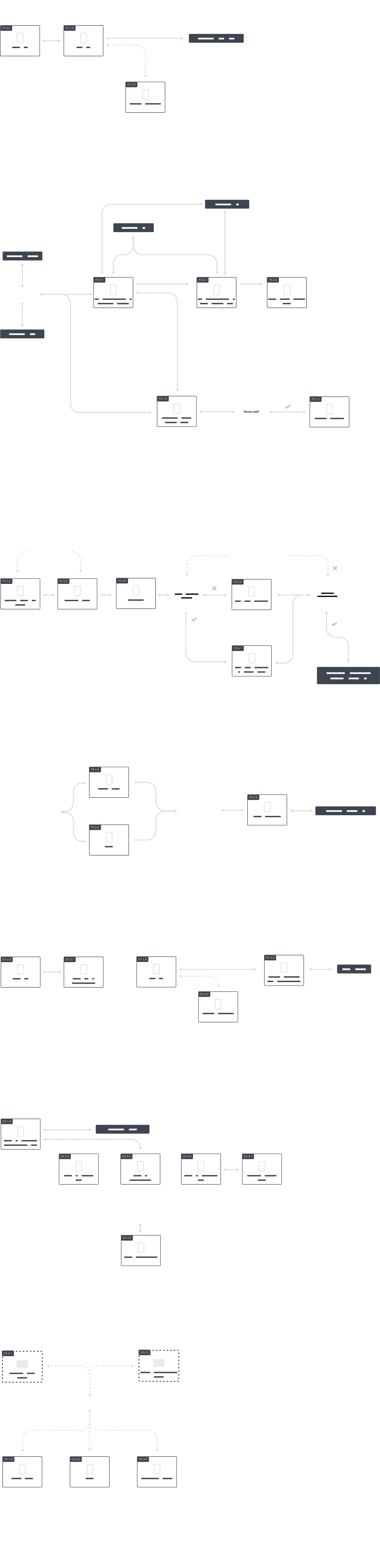 Using the structure of the user flows, I designed the first wireframes of the app. It was a challenge designing two apps at once - especially considering the different target user groups.