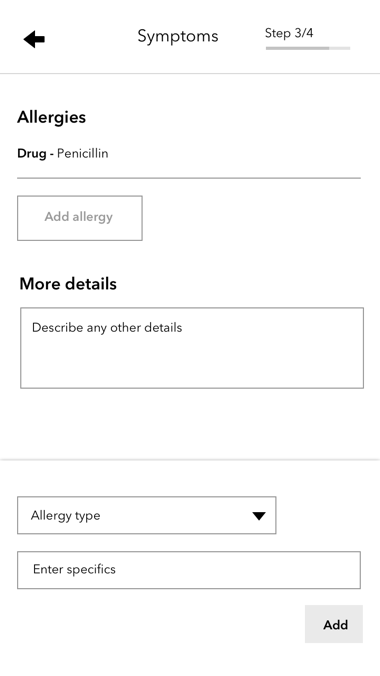 I also built a prototype of the booking flow and tested it with users. Most of my assumptions were confirmed, and I learned that users thought it would be better to show only symptoms related to the filters they had selected.